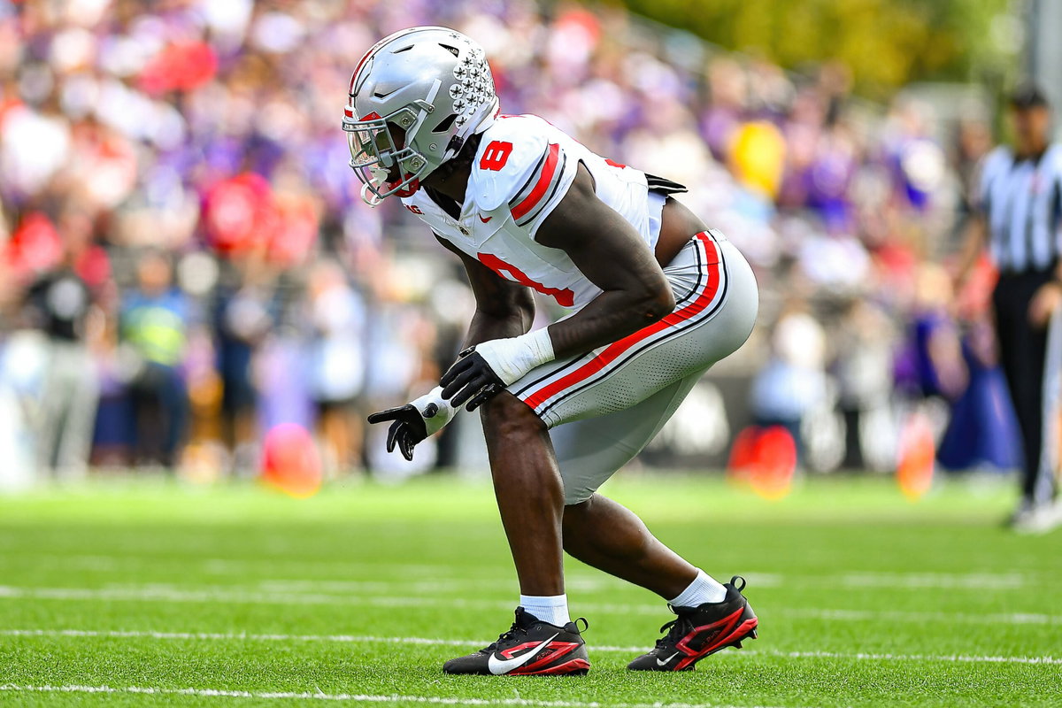 September 27, 2025: Ohio State Buckeyes linebacker Arvell Reese 8 ready for a play during the NCAA, College League, USA football game between the Ohio State Buckeyes and the Washington Huskies in Seattle, WA. Ohio State defeated Washington 24-6. / CSM Seattle United States – ZUMAc04_ 20250927_zma_c04_781 Copyright: xStevexFaberx