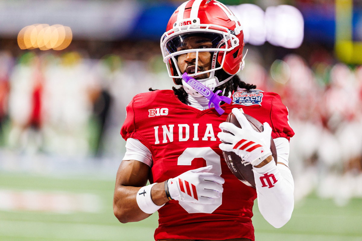 January 09, 2025: Indiana wide receiver Omar Cooper Jr. 3 during pregame of NCAA, College League, USA football game action between the Oregon Ducks and the Indiana Hoosiers at Mercedes-Benz Stadium in Atlanta, Georgia. /CSM Atlanta United States of America – ZUMAc04_ 20260109_zma_c04_177 Copyright: xJohnxMersitsx