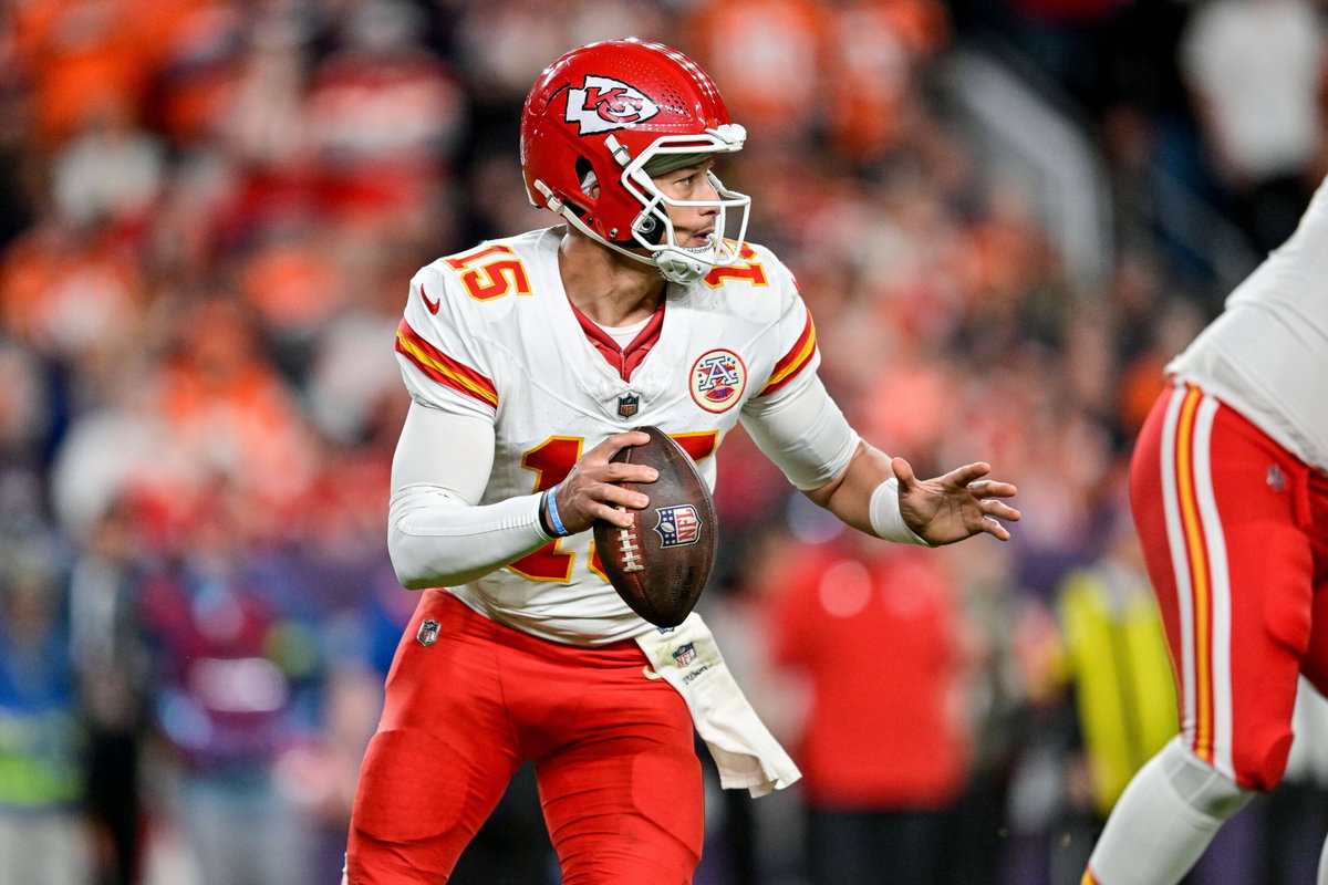 DENVER, CO – NOVEMBER 16: Kansas City Chiefs quarterback Patrick Mahomes 15 looks to pass in the fourth quarter during a game between the Kansas City Chiefs and the Denver Broncos at Empower Field at Mile High on November 16, 2025 in Denver, Colorado. Photo by Dustin Bradford/Icon Sportswire NFL, American Football Herren, USA NOV 16 Chiefs at Broncos EDITORIAL USE ONLY Icon132251116737