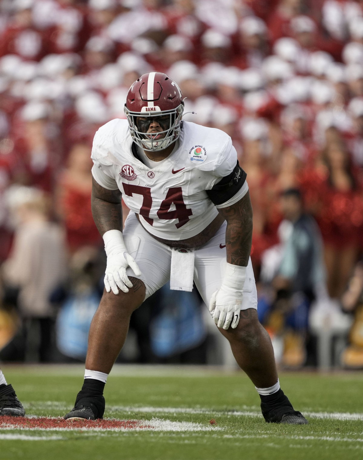 January 01, 2026 Alabama Crimson Tide offensive lineman Kadyn Proctor 74 in action during the College Football Playoff Quarterfinal between the Indiana Hoosiers and the Alabama Crimson Tide at the Rose Bowl in Pasadena, California. Mandatory Photo Credit : /CSM Pasadena United States of America – ZUMAc04_ 20260101_zma_c04_567 Copyright: xCharlesxBausx