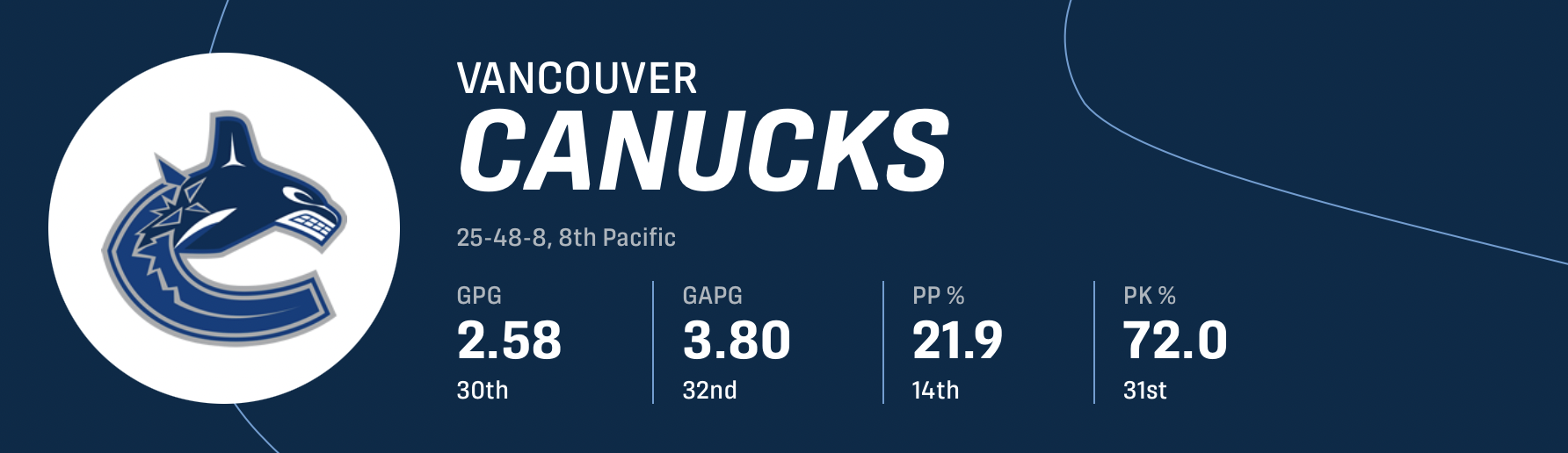 Vancouver didn’t finish last overall by accident. The team’s statistical breakdown speaks for itself.